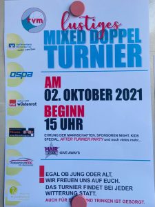 Lustiges Mixed-Doppel-Turnier mit jeder Menge Spass, Begleitprogramm, Essen & Trinken und LiveMusic ShowAct … !